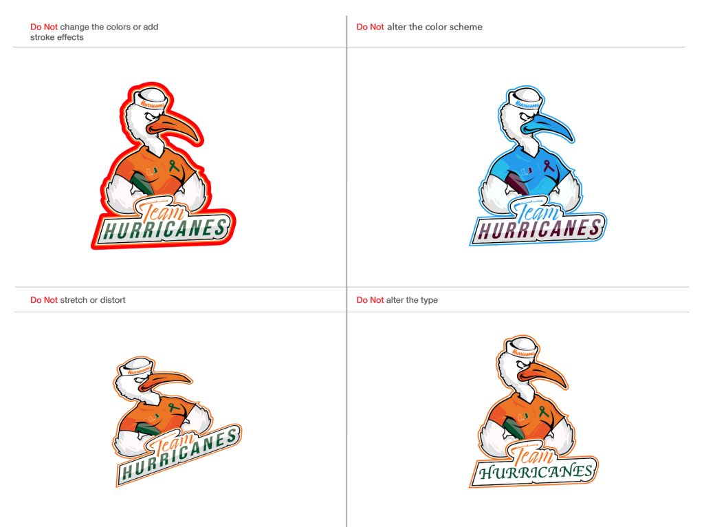Do not alter the color scheme or transform or eliminate any element of the logo, including the typography or the order of the brand, in any way unless it falls under the category of the responsive logo.